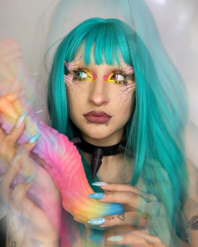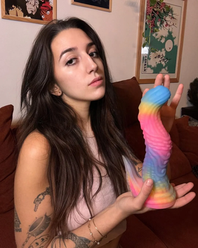This dildo showcases a mesmerizing gradient of deep blue and purple, reminiscent of mystical realms. The iridescent finish adds a touch of elegance and otherworldly beauty, creating a product that’s not only a pleasure tool but also a visual delight. The colors shift in the light, adding a magical element to its appearance and making it a unique addition to any collection. -
